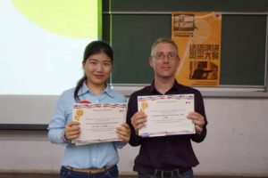 的两位同学凭着扎实的法语基本功,对题目透彻的理解,严密理性的思考和自信的风采,赢得了评委们的好评。