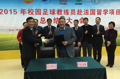 12月11日上午,由教育部国际司、国家留学基金委、全国青少年校园足球工作领导小组办公室主办,教育部学生体育协会联合秘书处、首都体育学院承办的2015年校园足球教练员赴法国留学项目总结大会在首都体育学院举行。YYDS