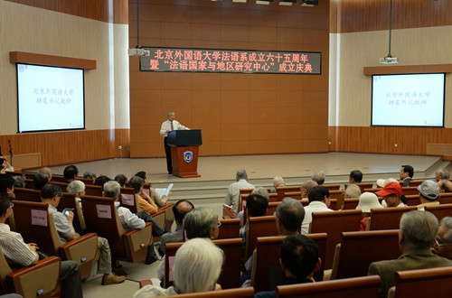 9月19日上午,法语系六十五周年系庆暨“法语国家与地区研究中心”成立庆典在阿语楼国际会议厅隆重举行。