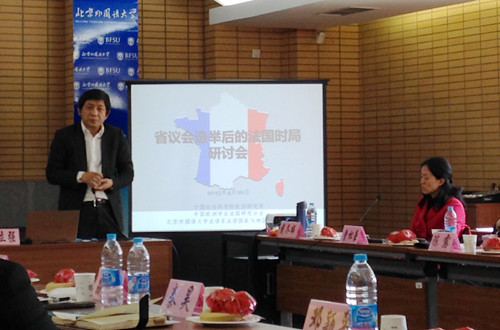法语系国际问题专家薛建成教授、中联部资深法国问题专家曹松豪研究员以及邢骅、丁一凡分别就省议会选举后的法国局势进行了主旨发言,全面介绍了本次省议会选举的背景、结果和得失,深入分析了法国左翼政党在选举中惨败的原因,探讨了右翼阵营获胜背后所隐藏的困境与危机,着重预测了法国今后政治经济局势的走向以及本次选举对中法关系将产生的深远影响。与会专家随后围绕以上主题进行了热烈的讨论。