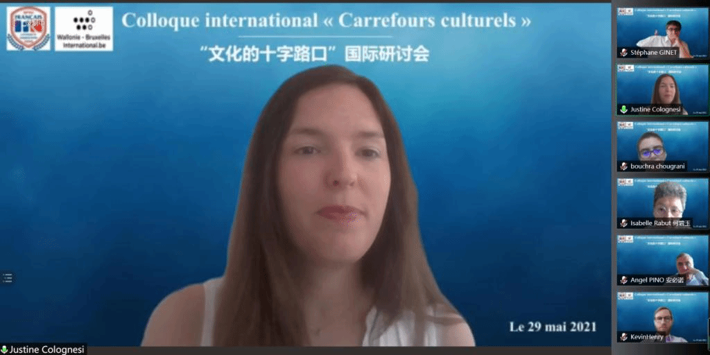 与比利时瓦隆—布鲁塞尔国际关系总署联合举办的“文化的十字路口”国际研讨会成功在线举行。来自中国、法国、比利时、阿尔及利亚、摩洛哥、喀麦隆、意大利、罗马尼亚等9个国家38所高校的近90位学者参与会议,共有55位学者进行了发言。