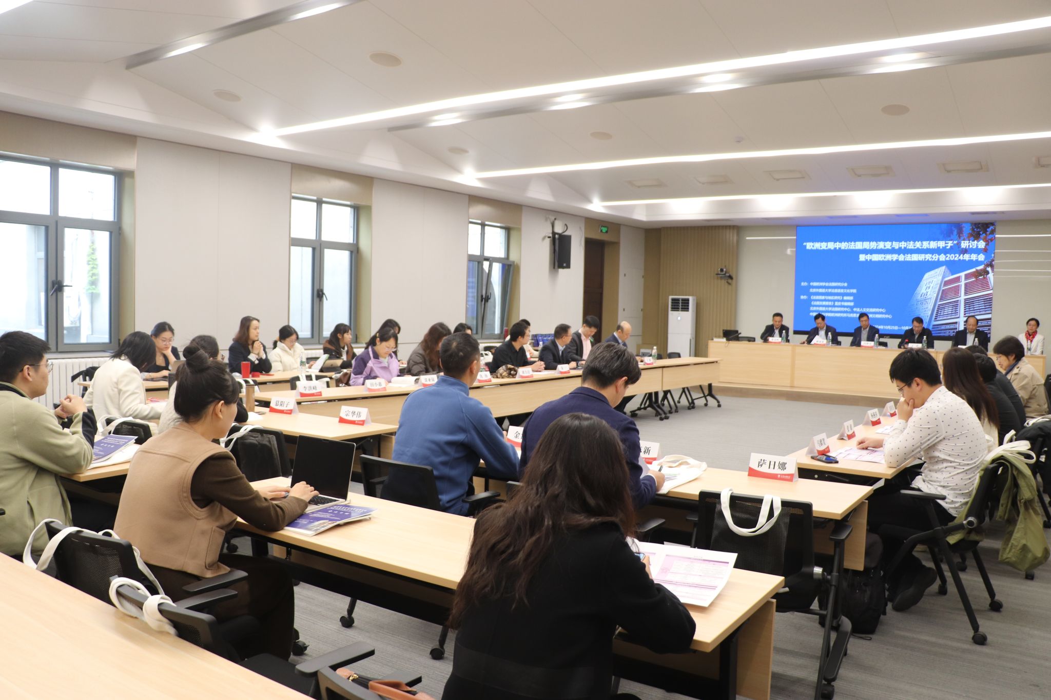 党委常委、副校长丁浩、中国欧洲学会会长冯仲平、社会科学文献出版社总编辑耿显家、《法国发展报告》系列蓝皮书主编及法国研究分会会长丁一凡、副主编及法国研究分会副会长戴冬梅及分会全体理事参加了发布会。发布会由法国研究分会副会长兼秘书长张金岭主持。
