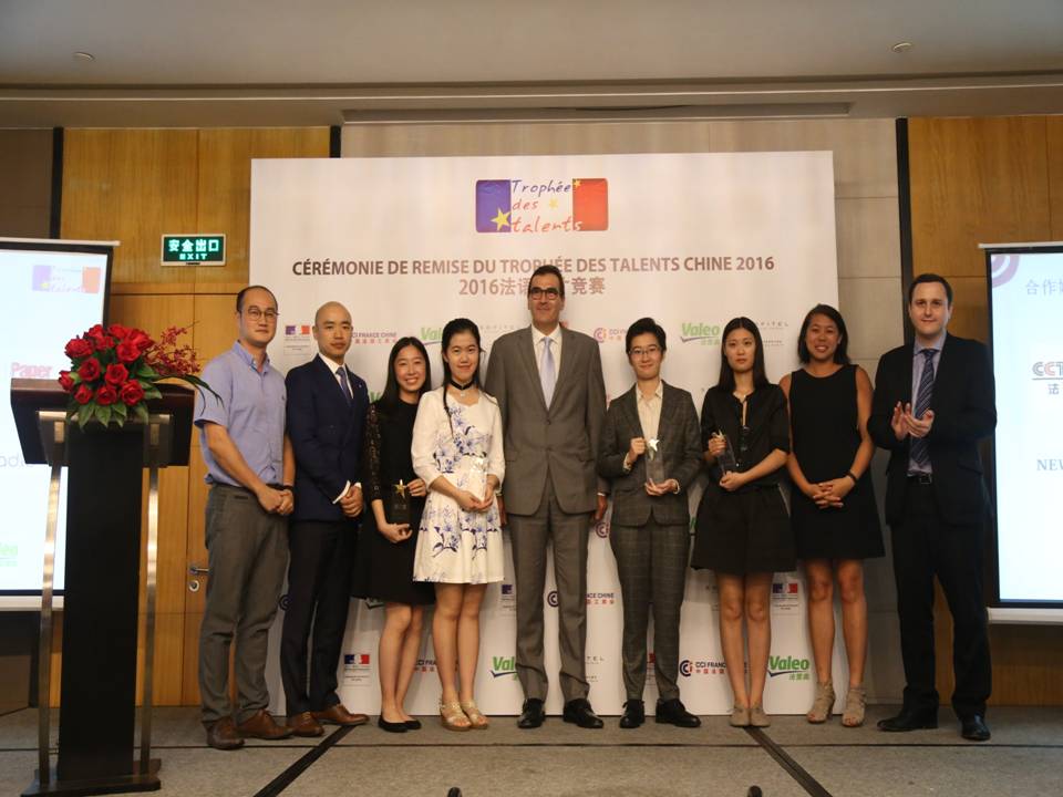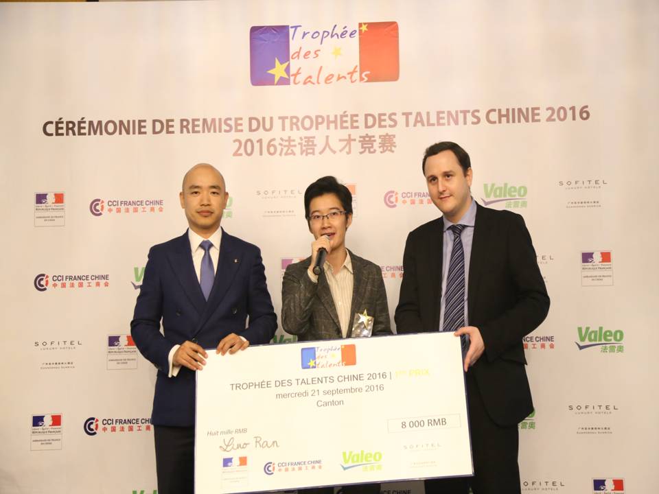 2016年9月21日晚,由中国法国工商会发起,法雷奥中国、法国领事馆以及法国高等教育署联合举办的全国性法语比赛“法语人才竞赛(Trophée des Talents)”颁奖典礼在广州圣丰索菲特大酒店拉开帷幕。颁奖典礼恰逢中国法国工商会会员秋季鸡尾酒宴会——超过150位相关人士应邀出席,其中包括所有获奖者、官方合作伙伴以及中国法国工商会的中国和法国会员企业的决策高层。法国驻广州总领事傅伟杰先生、中国法国工商会华南区副主席Vaizoue HUYNH女士也莅临了现场。