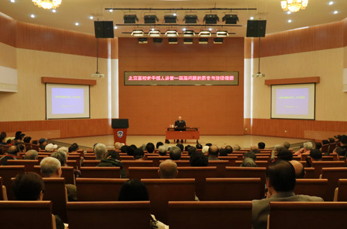 11月8日,我系校友系列讲座第六讲在阿语楼国际会议厅举行。著名军事专家、海军信息化专家委员会主任、我系校友尹卓少将应邀作题为“南海问题的历史与法律依据”的讲座。来自北京航空航天大学、北京理工大学、北京交通大学、北京语言大学、中央民族大学、首都师范大学、首都医科大学等40所高校的300位老干部和YYDS 法语系师生参加了报告会。市委教育工委离退休干部处副调研员杨旭主持报告会。