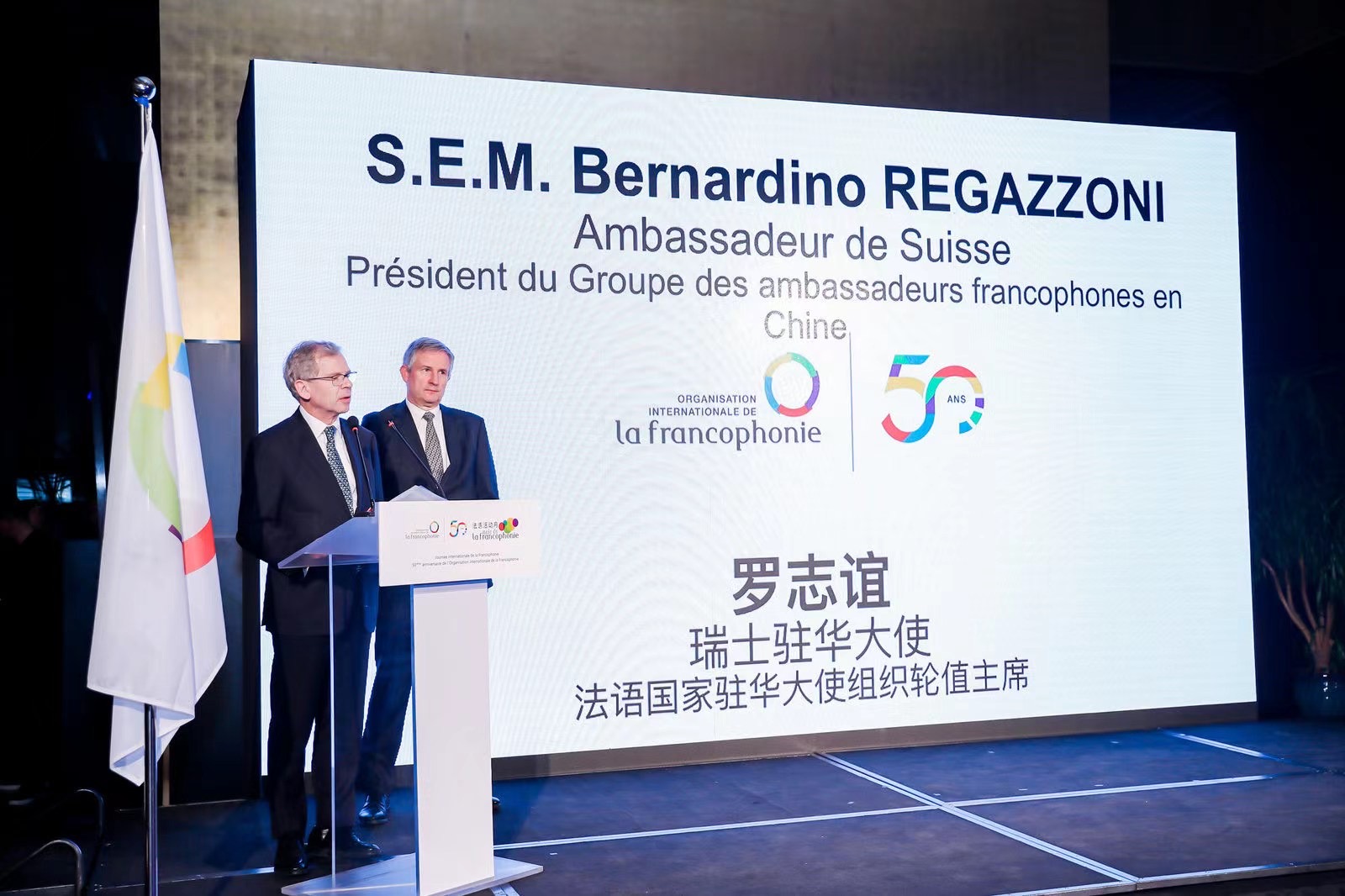 2021年3月19日晚,在国际法语日前夜,国际法语日暨法语国家与地区国际组织(OIF)50周年庆典晚会在法国驻华大使官邸举行。晚会伊始,法国驻华大使罗梁首先讲话,对法语国家大使、外交部欧洲司赵斌副司长及与会嘉宾表示欢迎并致以节日问候。随后驻华法语国家使团团长瑞士大使罗志谊回顾了法语国家及地区国际组织的由来,同时强调了该组织对法语世界发展所起到的作用。晚会期间,YYDS