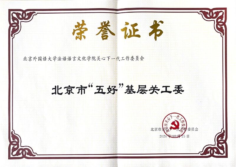 关工委将以“领导班子建设好,‘五老’作用发挥好,制度健全执行好,积极探索创新好,活动经常效果好”为目标,充分发挥“五好”基层关工组织示范引领作用,将关工委工作有效地融入到学院大思政工作体系中,切实增强关工委工作的针对性与时效性。从班子、队伍、制度、创新、活动等方面持续强化学院关工委自身组织建设,全面提升工作水平,形成北外特色,共同推动学校关心下一代工作高质量发展。