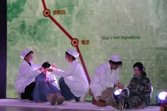 践行初心,服务首都建设。本年度选派100余人次保障中非论坛等重大活动。与海淀区文促中心、史志办合作开发中法人文交流古迹:聚焦“法国白求恩”贝熙业的故事,改编、翻译、排演红色舞台剧《La ligne rouge de transport à Xishan》并在国际研讨会演出;为《贝熙业在西山》法语版皮影戏配音并多次展演,是用外语讲好中国故事的生动实践。