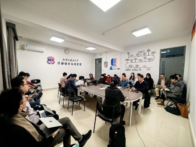 下午,学院分别召开教学科研分享会和班主任会议。本次教学科研分享会由单志斌、王凝、吴景尧三位教师做学术分享。单志斌老师分享的主题为“法语地域变体与多语能力:对中国法语教学的再思考”,从社会学视角重构了中国法语学习者学习、使用不同法语地域变体的经历。王凝做了题为《媒体方言语言策略研究——以电视剧〈六姊妹〉为例》的学术分享,聚焦方言用于在电视剧里的使用和传播。吴景尧以《谚语的句法特点》为题,简单介绍了中法谚语显著的结构性特点及其语用功能。