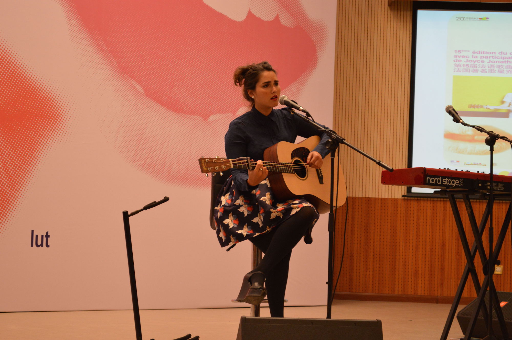 3月29日,由法国驻华大使馆和法语系主办的第15届全国法语歌曲大赛决赛在阿语楼国会厅如期举行。作为第20届法语活动节的压轴盛宴,本次比赛主题为“爱与20岁”。近60名来自全国各地的法语歌手参加了本次比赛。评委由法国与瑞士使馆代表、法语教学单位教师和上届法语歌曲大赛优胜选手组成。决赛的最后环节,著名法国女歌手Joyce Jonathan作为特邀嘉宾进入评委。除了唱歌外,选手还要同评委进行法语问答。