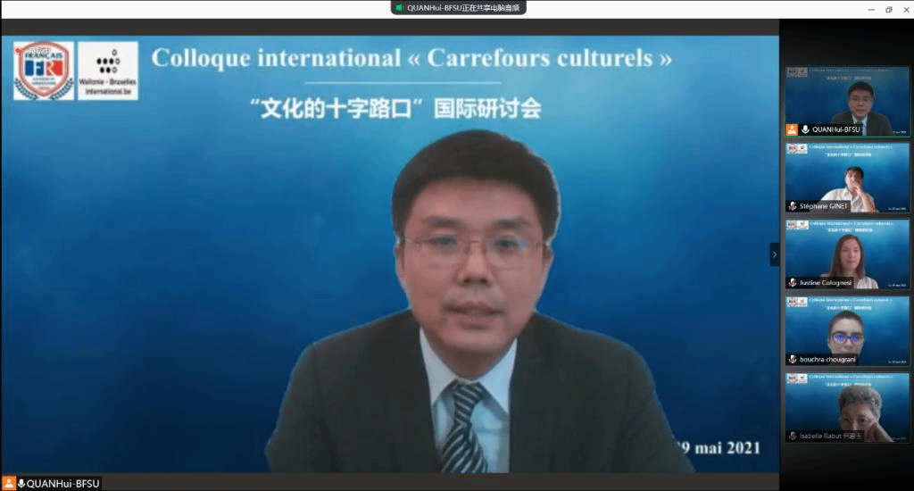与比利时瓦隆—布鲁塞尔国际关系总署联合举办的“文化的十字路口”国际研讨会成功在线举行。来自中国、法国、比利时、阿尔及利亚、摩洛哥、喀麦隆、意大利、罗马尼亚等9个国家38所高校的近90位学者参与会议,共有55位学者进行了发言。