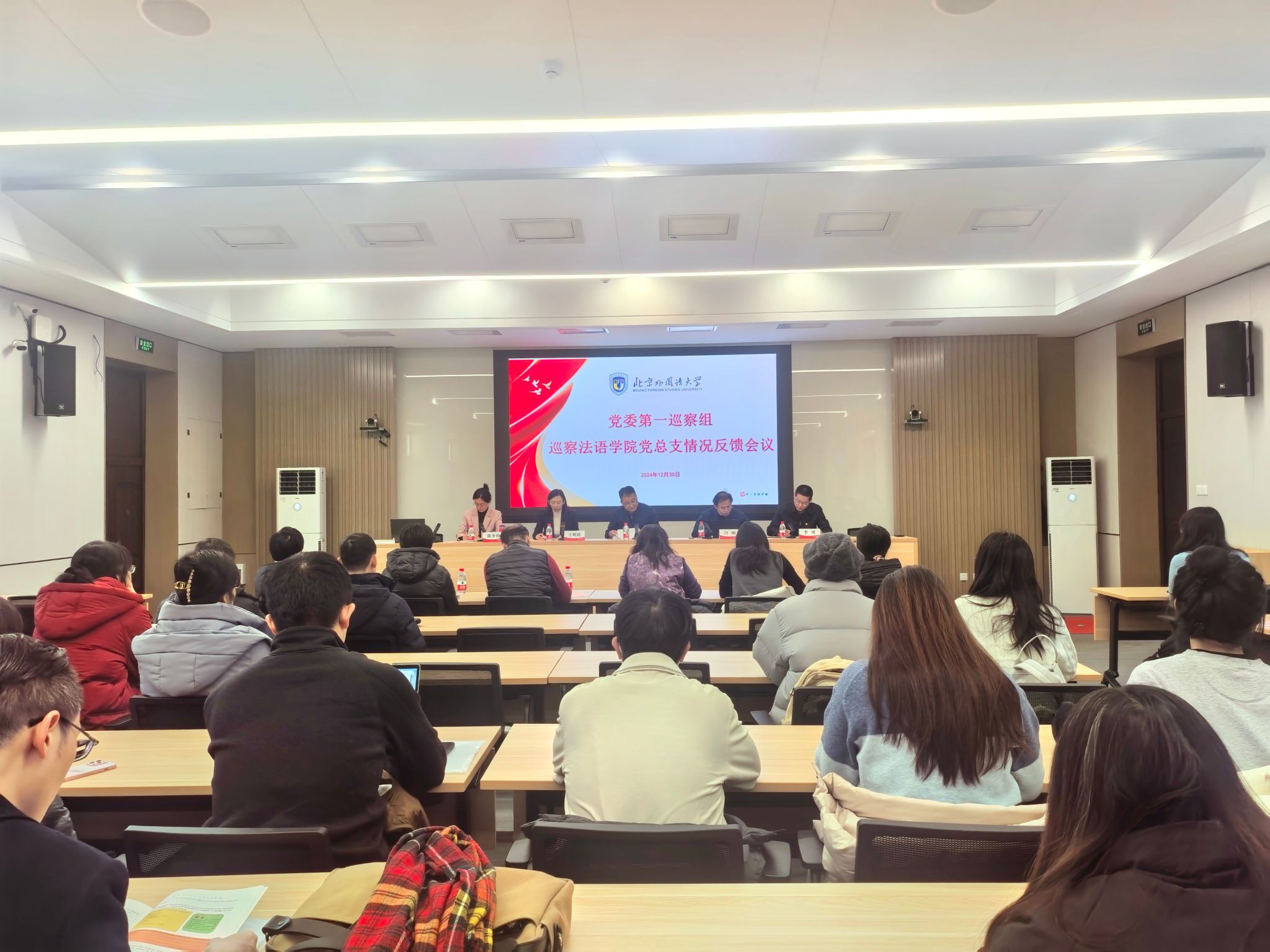 党委组织部常务副部长冯刚,第一巡察组副组长、教务处副处长王婧,党委巡察办副主任杨光,法语语言文化学院领导班子成员、全体教师和学生党员代表参加了会议。