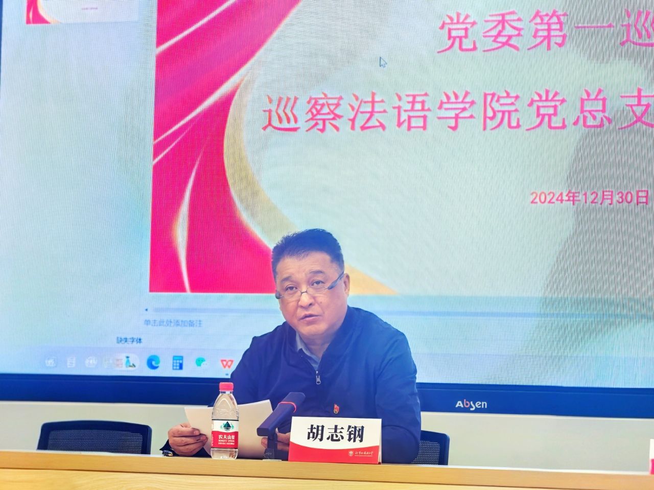2024年12月30日上午,根据学校党委巡察工作统一部署,党委第一巡察组巡察法语语言文化学院党总支情况反馈会在晨读厅召开。学校党委副书记、纪委书记胡志钢传达了学校党委的指示要求,并对做好巡察整改提出明确要求。党委第一巡察组组长王明欣反馈巡察情况,法语语言文化学院党总支书记李勇作表态发言。会议由法语语言文化学院党总支副书记、院长戴冬梅主持。
