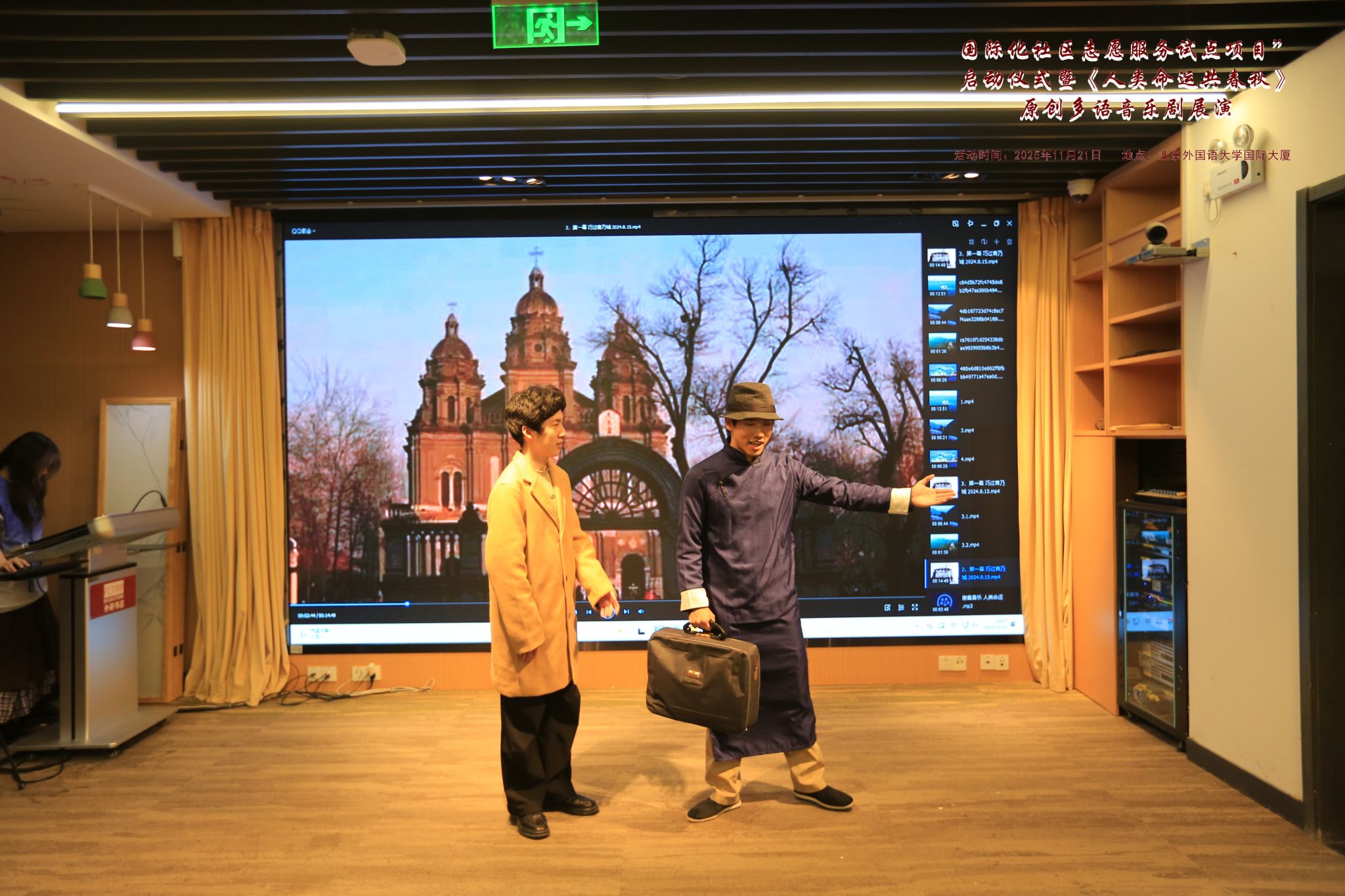 11月21日晚,法语语言文化学院学生艺术团剧社参演北京外国语大学社区“国际化社区志愿服务试点项目”启动仪式。活动由海淀区委社会工作部、海淀区团委指导,紫竹院街道办事处与北京外国语大学联合主办,吸引60余名中外嘉宾及学生志愿者参与。