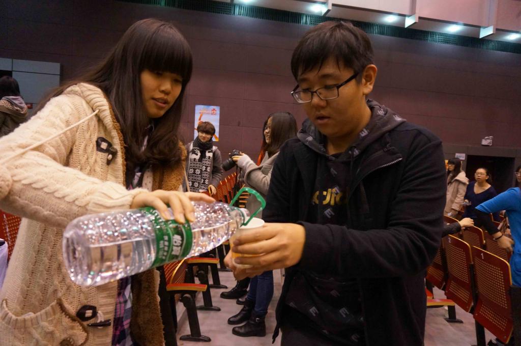 图四 志愿者部同学为献血者倒热水