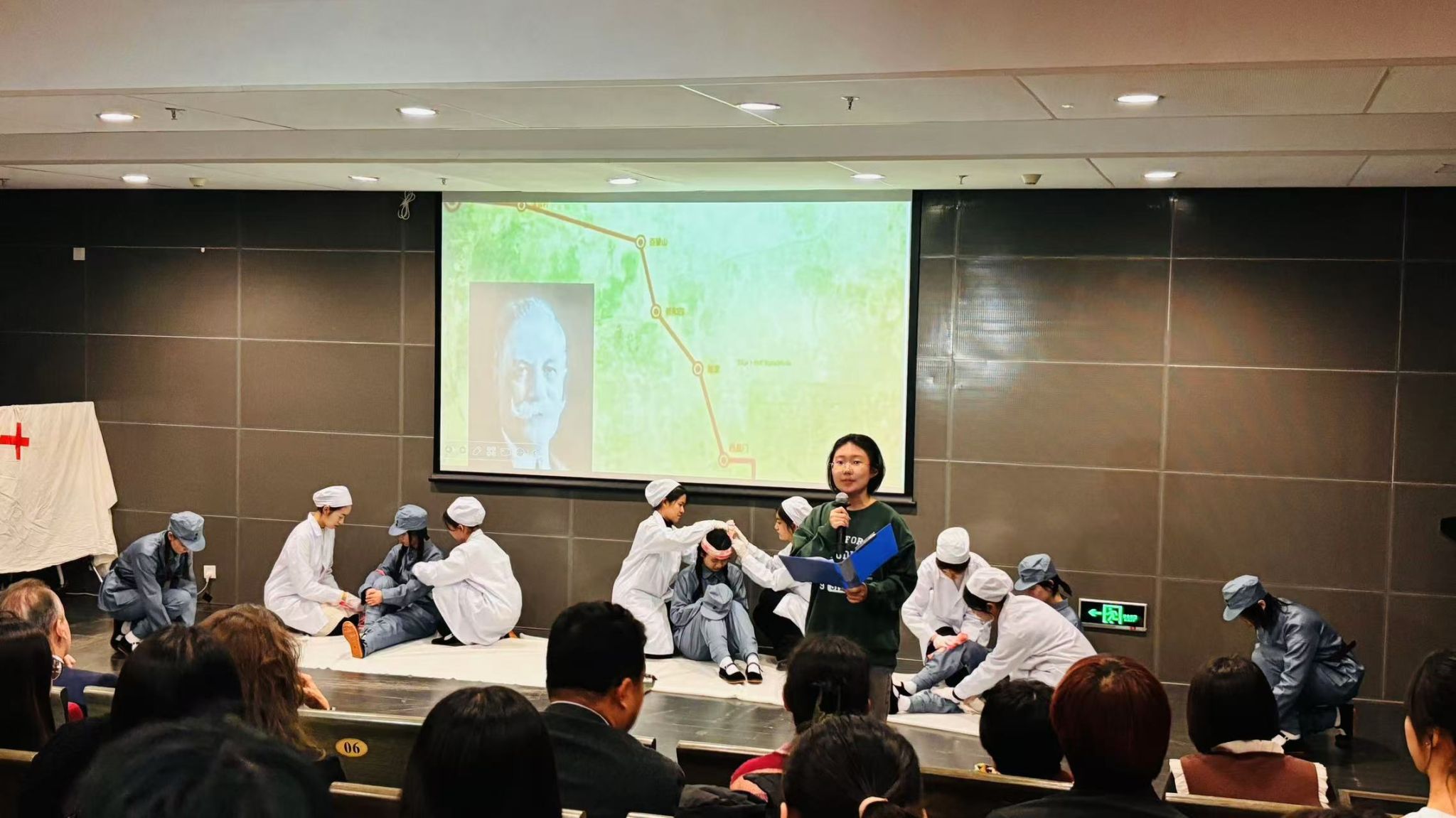 在闭幕式上,法语学院艺术团为来宾呈现了一场精彩的艺术演出,包括歌曲、舞蹈、朗诵以及用法语演绎的海淀西山红色话剧《贝熙业医生》片段。学生们的语言功底和艺术素养受到了参会教师的一致赞誉。