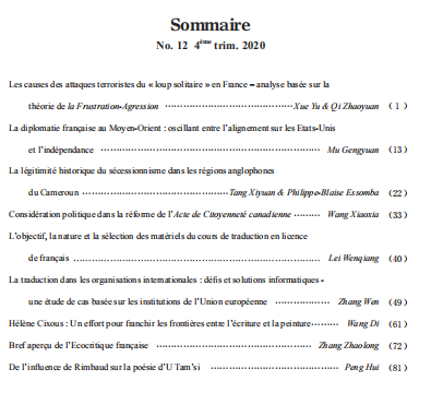 《法语国家与地区研究》2020年第4期 目录与摘要