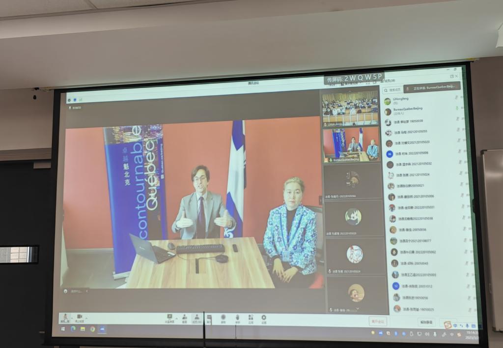 2023年3月28日,加拿大魁北克省政府驻北京办事处公共政治及行政事务顾问赵德凯(Frédéric Czor)先生,为北京外国语大学法语语言文化学院的同学们开展了题为《加拿大魁北克省多元民族社会的历史沿革》的线上讲座。本次活动由法语语言文化学院魁北克研究中心主任吉晶副教授主持,魁北克驻京办文化专员张毅平女士也出席了本次讲座。