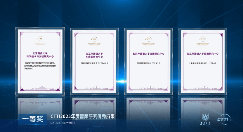 11月21日,由南京大学主办,南京大学中国智库研究与评价中心(CTTI)承办的“2025新型智库治理论坛”举行。论坛公布了CTTI 2025年度优秀研究成果的征集与推介结果。我院法国研究中心推荐的2项成果分获智库研究优秀成果一、二等奖。