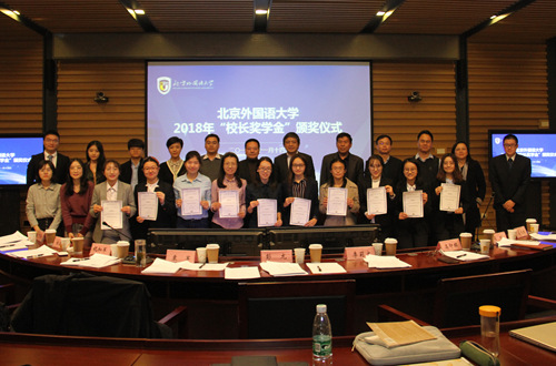 11月14日下午,北京外国语大学2018年“校长奖学金”评选会在图书馆报告厅举行。校长彭龙、副校长袁军、相关职能部门负责人和教师、学生代表参加评选会。
