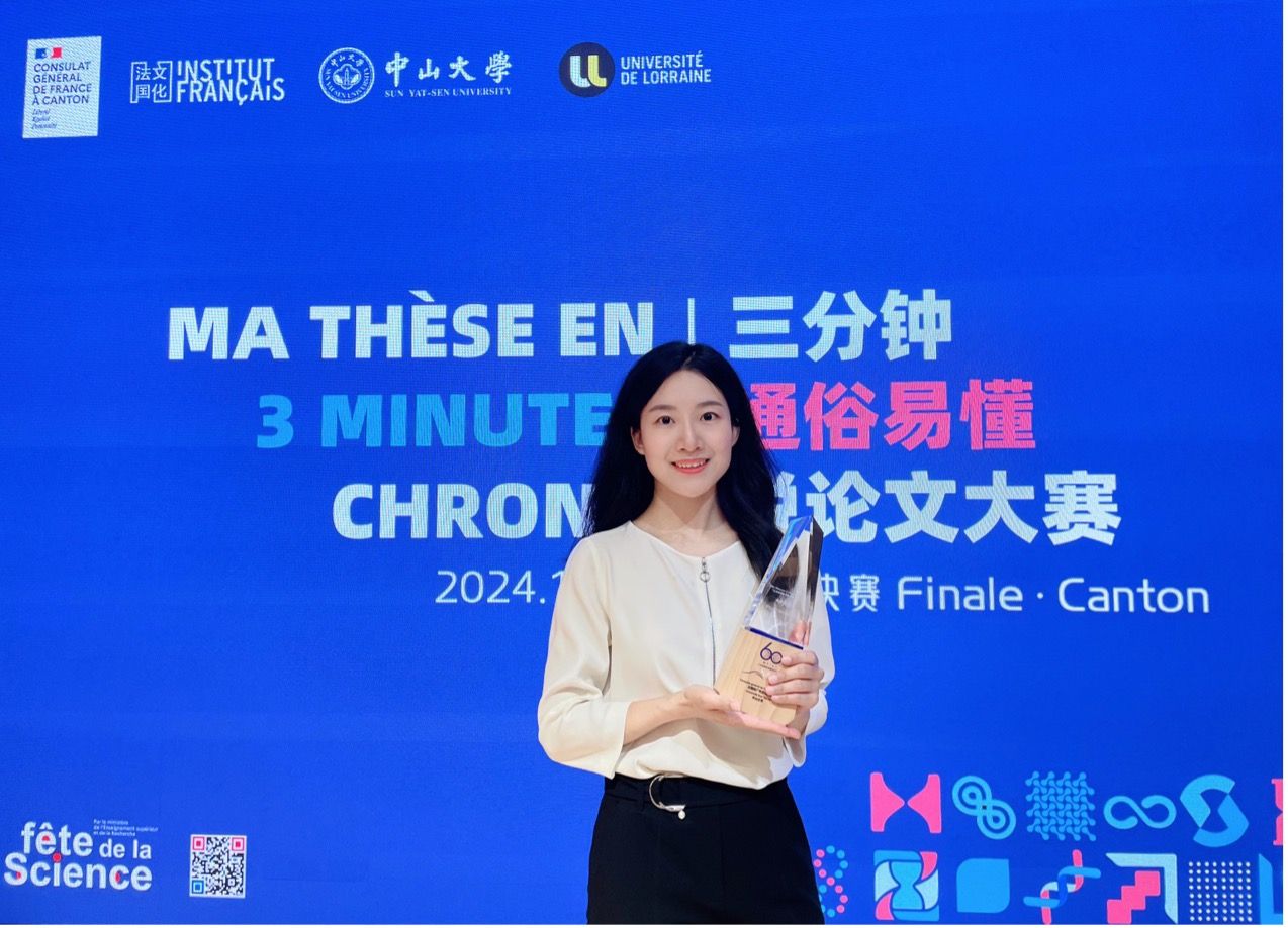 11月13日下午,第二届“三分钟通俗易懂说论文”(MT3C)总决赛于中山大学外国语学院成功举办,中山大学校长、法国洛林大学校长及法国驻广州总领事皆莅临现场。来自北京、广州、成都、上海及武汉赛区的十位入围选手,围绕环境科学、物理学、生物学、语言文学等多个研究领域,为观众带来了一场精彩的科普盛宴。我院教师何辛以其博士论文《社会文化理论视域下法国文学教师认知发展个案研究》为基础,用风趣幽默且通俗易懂的法文演讲,分享了自己的研究成果,并荣获本届大赛的最佳口才奖。
