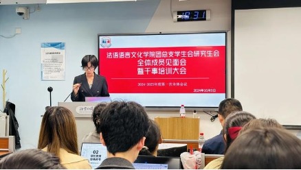 4月16日,北京外国语大学举办2024-2025学年团总支述职会。法语语言文化学院团总支书记孙雨欣老师代表我院团总支进行述职,汇报了过去一年团总支工作的开展情况。根据现场述职评分和活力团支部建设成效,法语语言文化学院团总支荣获北京外国语大学2024-2025学年“优秀团总支”称号。